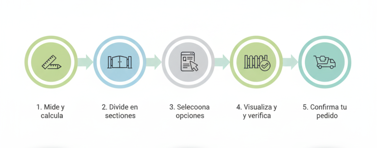 Antes de finalizar, verifica que tienes todos los elementos: tramos de valla, postes y, si aplica, la puerta. Una vez revisado, podrás completar la compra y tu valla estará lista para ser enviada.